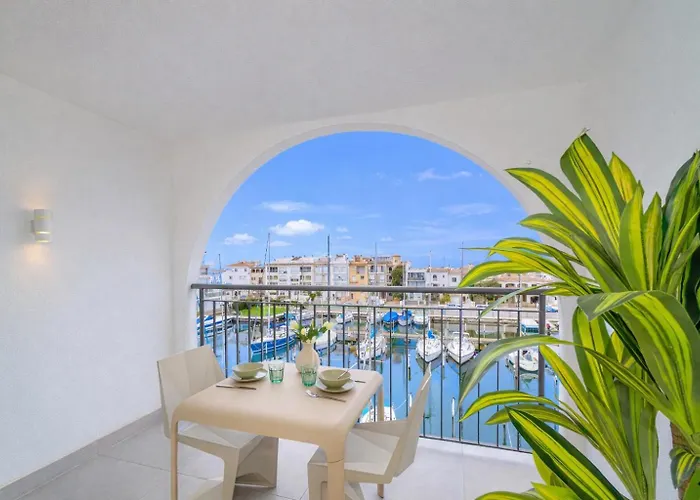 Milenial Immo B347 - Premium Canal View Studio 50 M From The Beach Empuriabrava van 45 m² biedt snelle toegang tot verschillende stadsoriëntatiepunten, zoals de Funnyway, gelegen op op 6 minuten te voet vandaan. Een van de hoogtepunten van dit strand appartement is een terras, waar gasten kunnen genieten van het uitzicht op het meer.